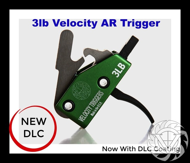 The latest innovation of Velocity Triggers is Diamond Like Carbon Coating (DLC) on the trigger which will give your Velocity Trigger the highly effective combination of a low coefficient of friction and high micro-hardness, its also a surface that will not rust and gives your trigger a deep dark black color.